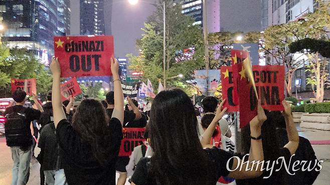 | ▲ 극우 성향 청년단체 '자유대학'이 2025년 9월 16일 서울 중구 서울중앙우체국 인근에서 혐중 시위를 진행하고 있다. |