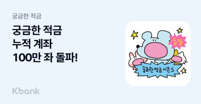 인터넷은행 케이뱅크는 한 달 만기 적금인 '궁금한 적금' 누적 계좌 수가 출시 1년 만에 100만좌를 돌파했다고 12일 밝혔다.
