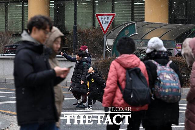 [더팩트ㅣ서예원 기자] 눈이 내리는 12일 오후 서울 마포구 성산동에서 한 어린이가 혀를 내밀고 하늘에서 떨어지는 눈송이를 맛보고 있다.