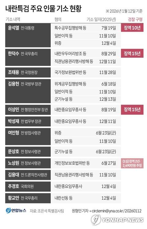 [그래픽] 내란특검 주요 인물 기소 현황