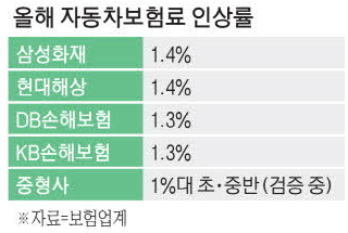 그동안 보험료 인상 자제를 요청해온 금융당국도 치솟은 손해율에 한발 물러서 1%대 초· 중반 인상률을 받아들였다.