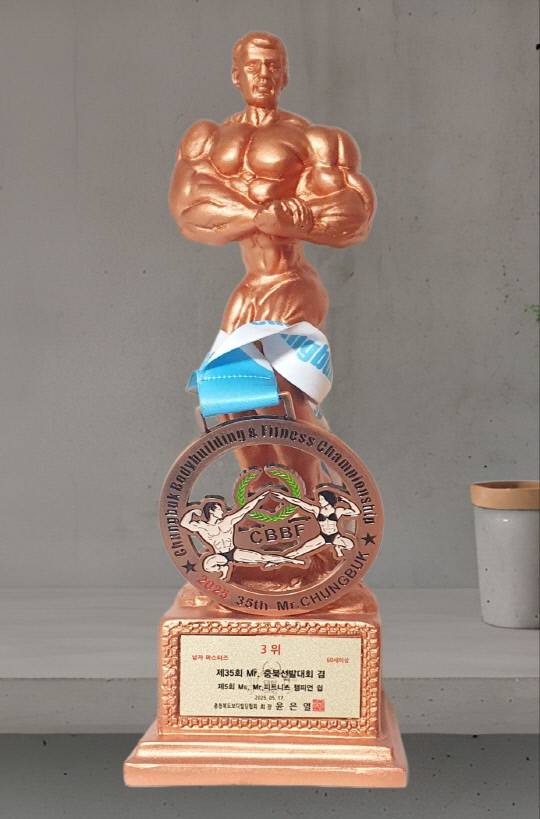 각고의 노력 끝에 지난해 충청북도 보디빌딩협회에서 주최한 제35회 Mr.충북선발대회에서 우수상을 수상하기도 했다. 대회 출전 즈음 감기에 걸렸지만 도핑 테스트 때문에 약도 복용하지 않고 버텨낸 수상이기에 더욱 애착이 간다.