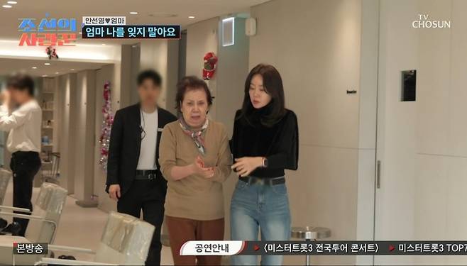 12일 방송된 TV CHOSUN '조선의 사랑꾼'에서는 안선영이 치매를 앓고 있는 엄마와 함께하는 일상이 그려졌다.
