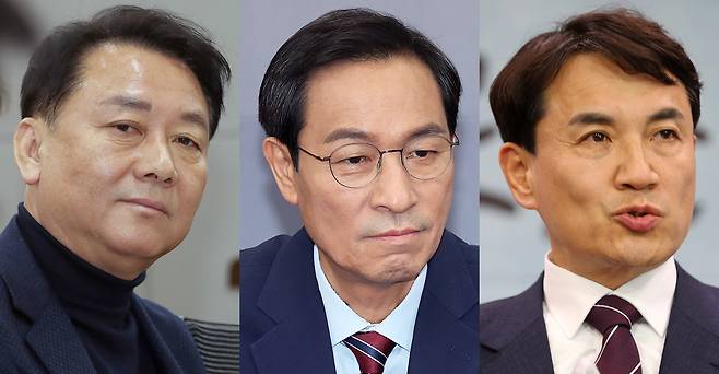 | ▲ 왼쪽부터 이광재 전 강원도지사, 우상호 청와대 정무수석, 김진태 강원도지사. |