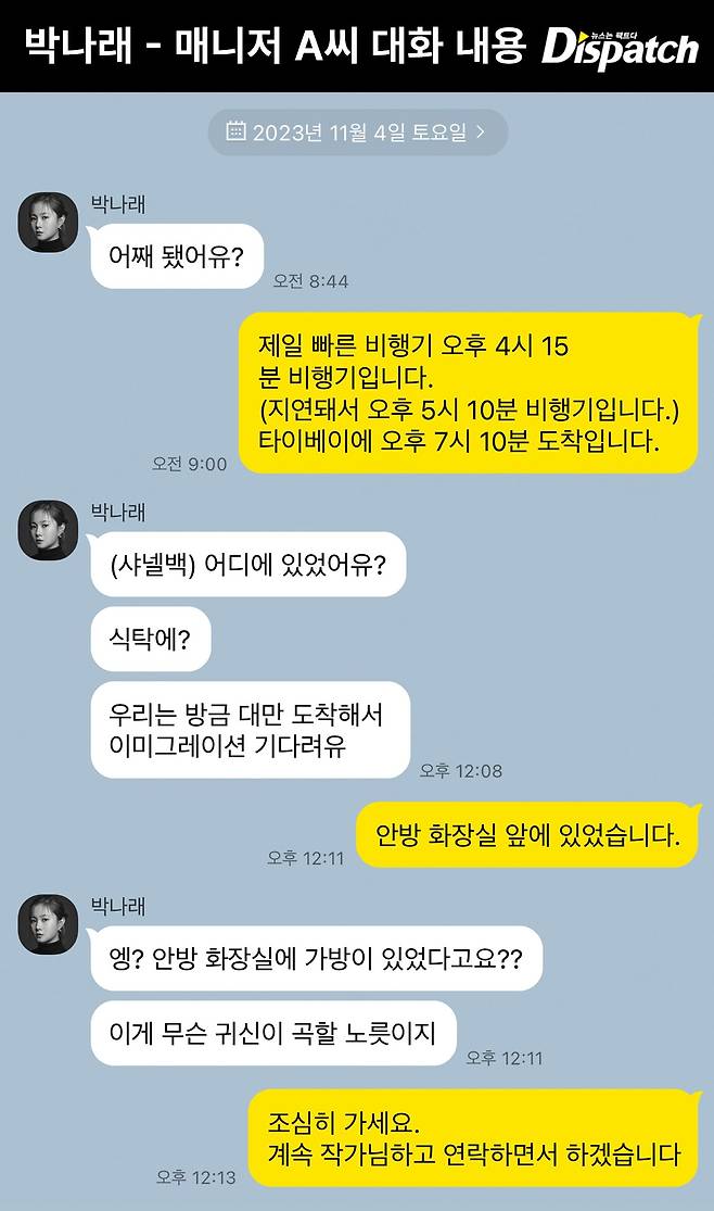18. 박나래와 매니저 A씨가 나눈 카톡대화를 입수했다.