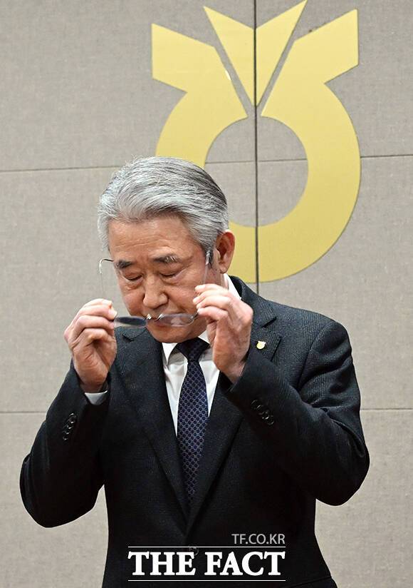 [더팩트ㅣ임영무 기자] 강호동 농협중앙회 회장이 13일 오전 서울 중구 새문안로 농협중앙회 본관에서 농림축산식품부 특별감사 중간결과 발표와 관련해 대국민 사과를 하고 있다.