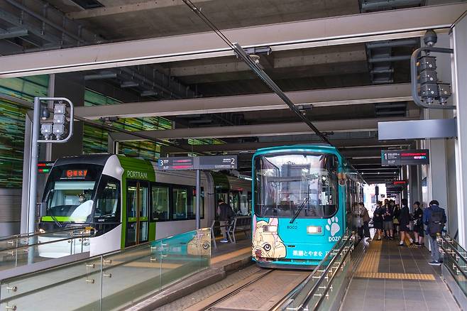 | ▲ 일본 도야마시 도야마역의 모습. 도심과 교외를 연결하는 포트램(Portram)과 도심 순환선인 센트램(Centram)이 한 정류장에서 환승 가능하도록 설계됐다. 대중교통 중심의 콤팩트 시티 전략을 뒷받침하고 있다. |