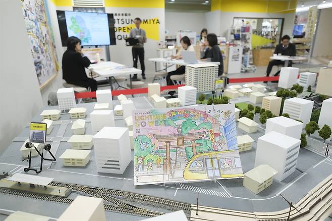 | ▲ 일본 우쓰노미야시 경전철 홍보관에 전시된 도시 모형. 우쓰노미야시는 경전철 노선을 중심으로 역세권 개발과 도시재생 계획을 통합적으로 추진하고 있으며, 시민들에게 콤팩트 시티 비전을 적극적으로 알리고 있다. |