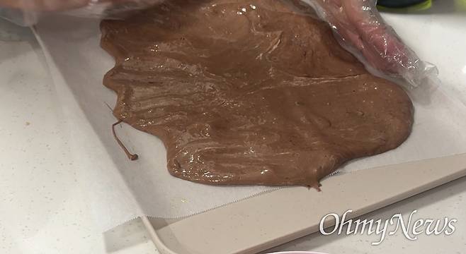 | ▲ 녹인 마시멜로를 얇게 펴서 식힌다. |