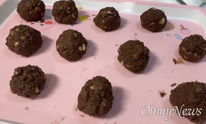 | ▲ 누텔라와 부순 에이스를 섞어 동그랗게 빚어준다. |
