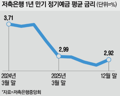 저축은행중앙회 공시에 따르면 이날 기준 1년 만기 정기예금 평균 금리는 2.93%다. 일부 저축은행이 3%대 초반의 금리를 제시하고 있지만, 시중은행과 인터넷전문은행 예금금리와 큰 격차는 없는 상황이다.