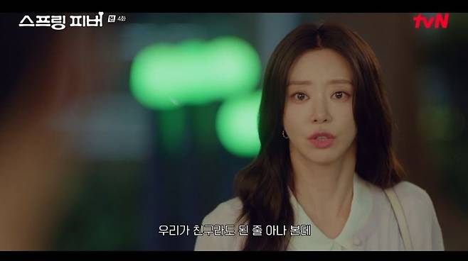 13일 방송된 tvN 월화드라마 '스프링 피버' 4회에서는 선재규(안보현 분)에게 화를 낸 윤봄(이주빈)의 모습이 그려졌다.