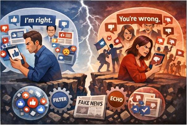 그런 이유는 첫째, 알고리즘 기반의 정보여과(filter bubble) 현상이다. 인터넷과SNS 플랫폼의 알고리즘은 사용자의 과거 시청 기록과 반응(검색, 클릭, 추천 등)을 분석해 사용자가 좋아하거나 동의할 만한 콘텐츠만 선별적으로 제공한다. 그 결과 사용자를 마치 거품 속에 갇힌 것처럼 만들어 결과적으로 자신의 신념과 다른 의견으로부터 차단되게 만든다.