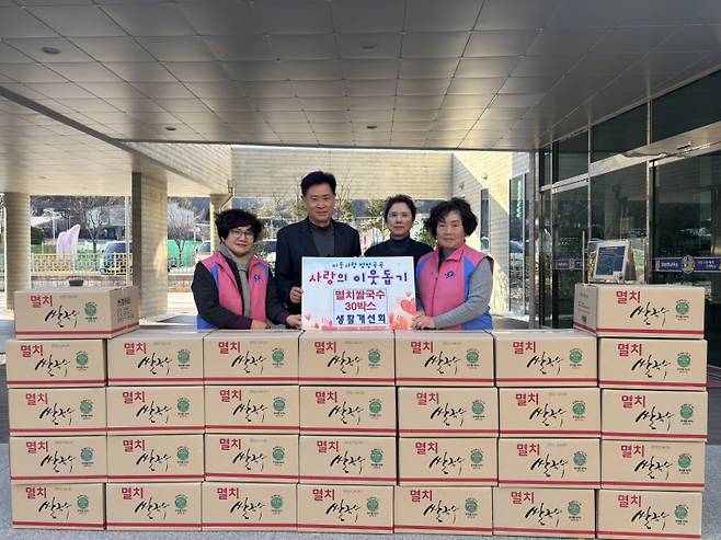 이방면에서도 따뜻한 나눔이 이어졌다. 이방면 생활개선회(회장 성정옥)는 지난 13일 면내 어려운 이웃을 위해 멸치쌀국수 30박스를 기탁했다. 생활개선회는 매년 현금과 생필품을 기탁하며 꾸준한 나눔을 실천해 오고 있다. 성정옥 회장은 “작은 정성이지만 이웃들에게 도움이 되길 바란다”고 전했다.
