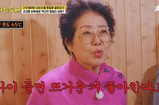 지난 13일 방송된 JTBC '혼자는 못 해'에는 배우 겸 유튜버 선우용여가 게스트로 출연해 찜질방 투어에 나섰다.