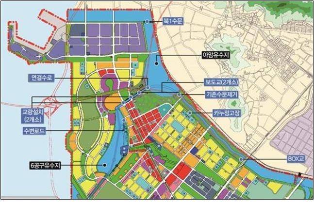 우선 6공구 호수에서 아암 호수까지 약 1.03㎞ 구간을 연결하는 수로는 두 호수에 요트, 보트, 수상택시 등이 운항할 수 있도록 준설하고, 친수 스탠드와 수변 로드 조성, 호안옹벽 정비 등 인프라 구축이 동시에 추진된다.