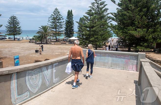 (시드니 로이터=뉴스1) 권영미 기자 = 14일 호주 시드니 본다이 비치에서 방문객들이 보행자 전용 다리를 이용하고 있다. 이 다리는 지난해 12월 14일 하누카 행사 중 두 명의 용의자가 총기를 난사한 곳이다. 노후한 데다가 테러 사건의 악몽을 떠오르게 해 철거 여부를 두고 지역사회 논란이 이어지고 있다. 2026.01.14.