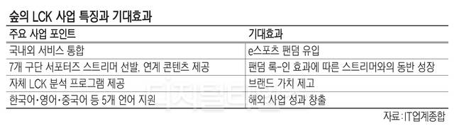 숲은 LCK를 비롯한 주요 리그 생중계에 앞서 국내외 서비스를 하나로 통합하고, e스포츠를 중심으로 한국·동남아·대만·북남미 등 주요 지역 커뮤니티를 연결할 방침이다.