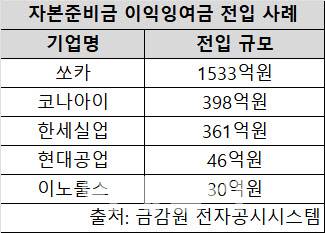 중소형주 가운데서도 감액배당을 염두에 둔 자본금 전입 사례가 이어지고 있다. 자동차 부품업체 현대공업(170030)은 지난해 11월 주총에서 약 46억원 규모의 자본준비금을 이익잉여금으로 전입하며 주주환원 정책 기반을 강화하겠다고 밝혔다. 현대공업은 2013년 상장 이후 꾸준하게 배당정책을 이어오고 있다.