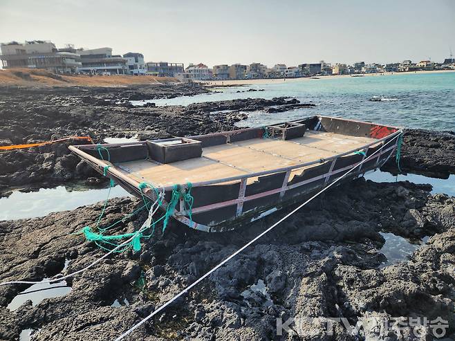 지난달 30일, 대정읍 신도리 해안에서도 비슷한 크기와 모양의 배가 발견됐습니다.