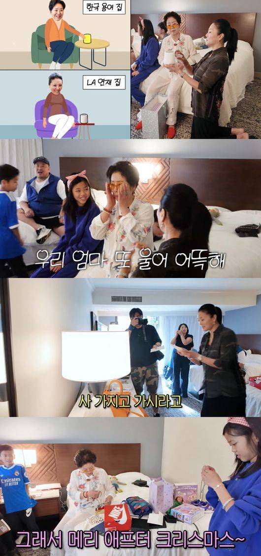 호텔 객실에서 최연재 씨는 크리스마스 선물을 했고, 선우용여는 "언제 이렇게 다 준비했냐"라며 고마움을 드러냈다.