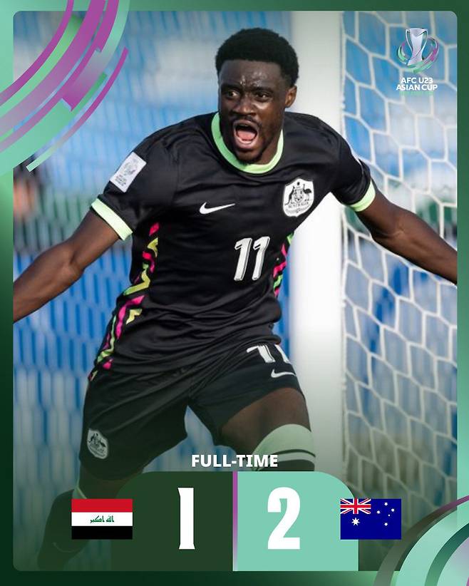 호주는 14일(이하 한국시각) 사우디아라비아 리야드의 프린스 파이살 빈 파흐드 스포츠 시티에서 열린 이라크와의 2026년 아시아축구연맹(AFC) U-23 아시안컵 조별리그 D조 최종전(3차전)에서 2대1 역전승했다.