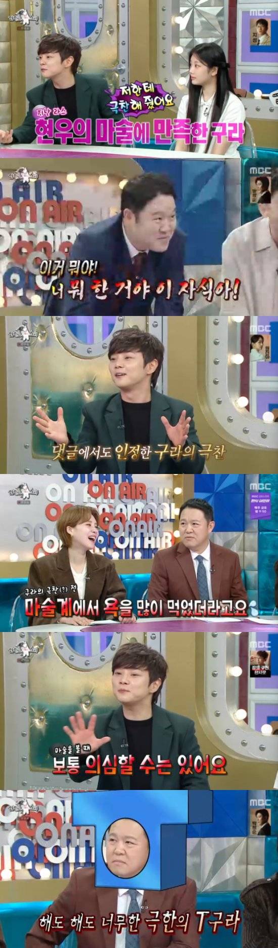 이어 "지난 번 '라디오스타' 출연했을 때 카드 마술을 보여드렸었는데, 저한테 구라 형님만의 방식으로 극찬을 해주셨었다"고 했다. 당시 김구라가 최현우의 마술에 "너 이자식! 뭐 한거야!"이러면서 극도로 흥분을 했었다.