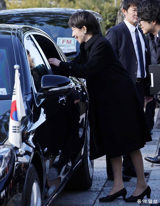 - 차 창문 내리자 또 다가와 손잡아…다카이치 ‘극진한 환송’