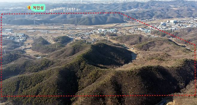 | ▲ 용인 삼성전자 공장 건설 예정지(빨간 점선)로 부터 겨우 1km 떨어진 곳에 처인성이 위치하고 있다. 이곳은 신라와 고려의 전략적 요충지로, 통일신라 유물이 많이 발굴되는 곳이다. |