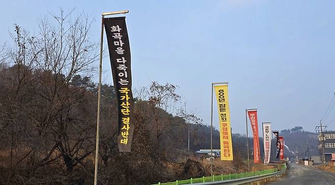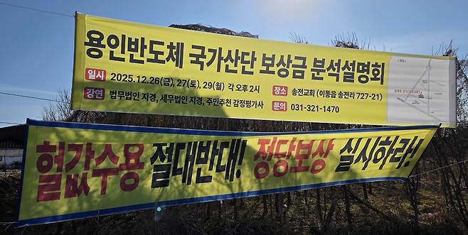 | ▲ 삼성전자 반도체 공장이 들어설 용인국가산업단지를 반대하는 현수막이 펄럭이고 있다. |