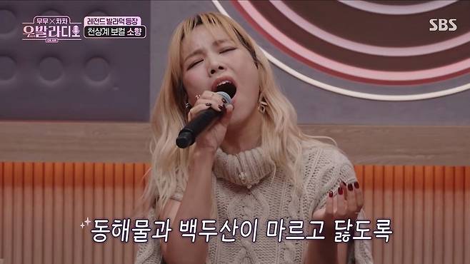 소향은 13일 SBS '무무X차차 우발라디오'(이하 '우발라디오')에 출연해 자신을 롤모델로 꼽은 최은빈과 듀엣 무대를 선보였다.