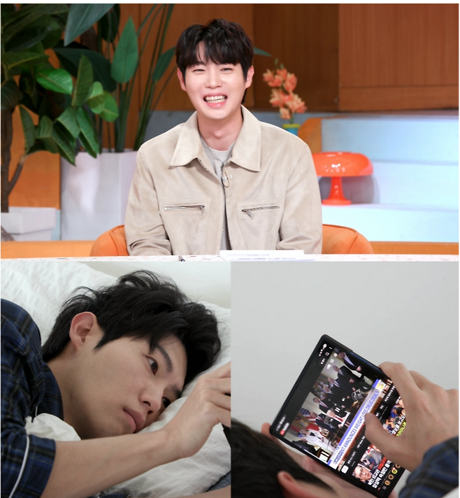 이날 VCR에서 손태진은 아침에 눈을 뜨자마자 휴대전화로 미국 뉴스를 틀어 자막 없이 시청해 놀라움을 안긴다.