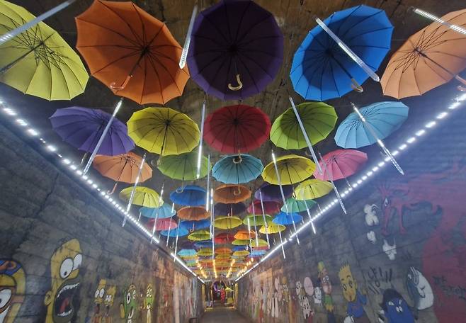 | ▲ 오미자 테마터널 내부. 만화 캐릭터벽화, 문경 전통 도자기 전시 공간, 트릭아트의 세계, 오미자 테마구간, 포토존, 오로라 오케스트라 연주 코너를 즐길 수 있는 곳 |