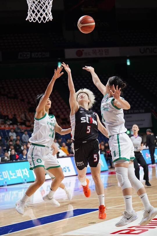하지만 수비 보충재(?)가 많았다. 정예림과 김정은(178cm, F), 사키가 그랬다. 박소희는 볼 있는 1대1에만 신경 쓰면 됐다. 상대와 강하게 부딪혔고, 루즈 볼 싸움 또한 철저히 했다.