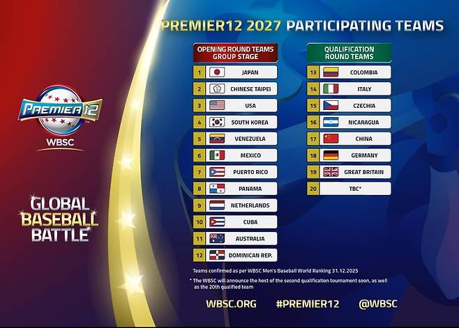 (MHN 양진희 기자) 2027년 야구 프리미어12 본선 무대에 나설 출전국이 확정됐다.