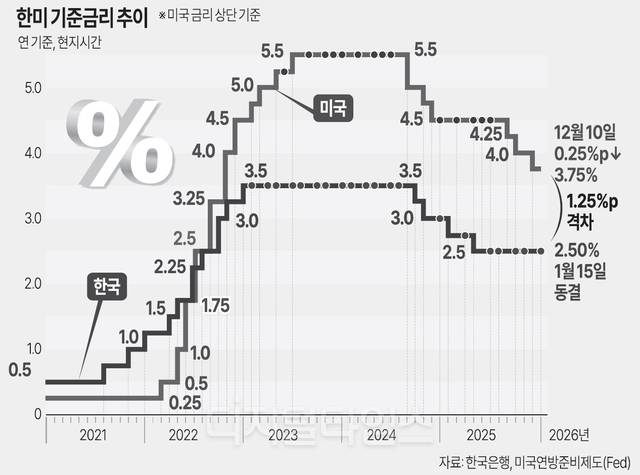 다만 금융안정 측면에서는 상황이 다르다고 봤다. 원·달러 환율이 다시 1400원대 중후반으로 올라선 가운데 대외 불확실성과 수급 요인이 겹치며 환율 변동성이 확대되고 있다는 점이 통화정책 판단에 부담으로 작용했다. 이 총재는 “최근 달러화가 강세를 보이고 엔화가 약세를 보이는 가운데 이란, 베네수엘라 사태 등 지정학적 리스크가 증대됐다”며 “거주자의 해외 투자 증가 등 수급 쏠림이 지속되고 있다. 환율이 다시 1400원대 중후반 수준으로 높아져 상당한 경계감을 유지해야 한다”고 설명했다.