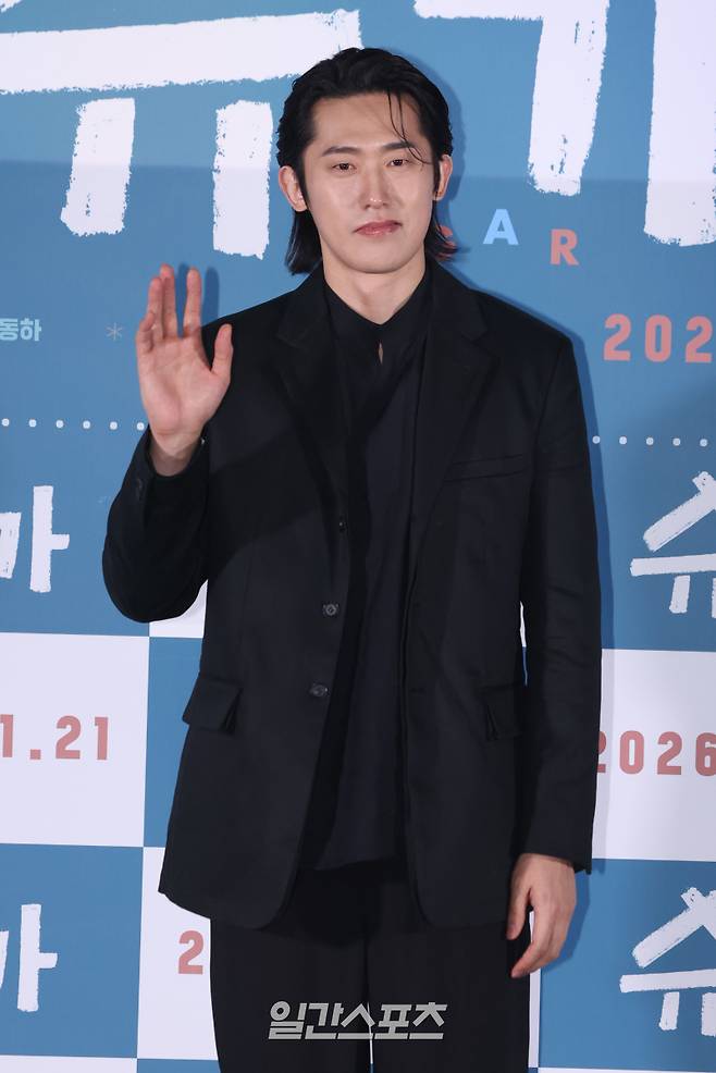 배우 민진웅이 15일 오후 서울 광진구 롯데시네마 건대입구점에서 열린 영화 '슈가' 언론배급시사회 및 기자간담회에 참석해 포토타임을 갖고 있다.