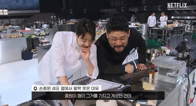 흑백 연합전 미션 당시 손종원 셰프 옆에서 활짝 웃은 이유에 대해서는 "타임라인이라는 게 같이 짠 거였다. 작가님들이 프린트 해준다고 해서 종원이 형이 갖고 계셨다. 5분 단위로 짰는데, 2분 단위로 짠다는 그런 험한 말을 해서 웃음이 나왔다"고 비하인드를 전했다.