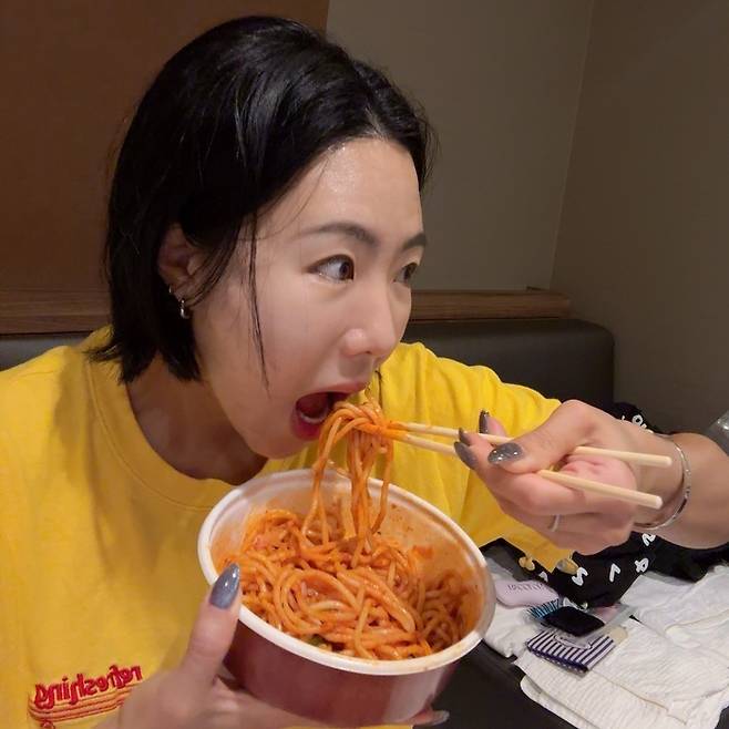 또한, 식당에서 미니언즈 모자를 깊게 눌러쓴 채 카메라를 응시하는 모습이나, 면 요리를 가득 집어 올리며 시원시원한 먹방을 선보이는 사진에서는 이상화만의 털털하고 유쾌한 매력이 돋보였다.