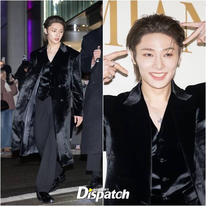 아이엔은 블랙 벨벳 수트로 멋을 냈다. 잘생긴 비주얼이 시선을 사로잡았다.