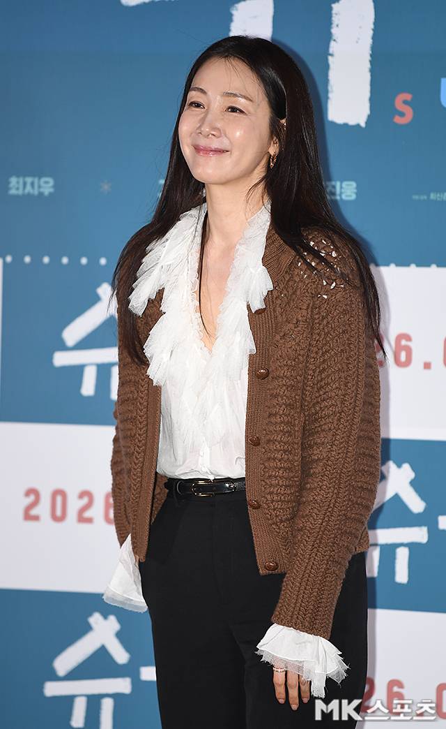 15일 오후 서울 롯데시네마 건대입구에서는 영화 ‘슈가’ 언론시사회 및 기자간담회가 열렸다. 이날 현장에 모습을 드러낸 최지우는 올해 50세라는 나이가 무색할 만큼 여리여리한 슬렌더 몸매와 단정한 스타일로 눈길을 끌었다.