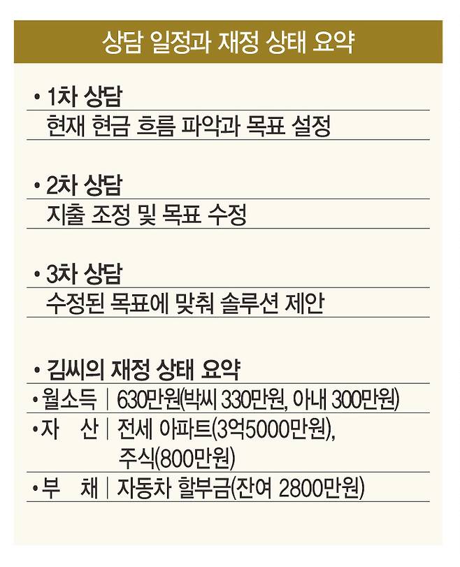 통장을 합쳐야 하는지를 놓고 부부는 며칠을 고민했지만, 쉽게 결정내리지 못했다. '경제권을 각자 갖는 게 더 합리적'이란 생각을 떼내지 못한 결과였다. 그러는 사이 가계부 적자는 계속 불어났다. 지금은 남편의 상여금으로 해결하고 있지만, 자녀가 태어나 지출이 더 늘면 한계에 직면할 게 뻔했다. 이대론 안 되겠다고 생각한 부부는 필자에게 재무상담을 요청했다.