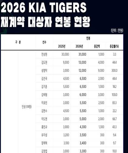 KIA 타이거즈가 2026시즌을 앞두고 강도 높은 연봉 조정에 나섰다.