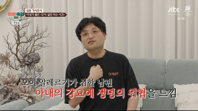 [OSEN=박근희 기자] '이혼숙려캠프’ 남편이 아내에게 생명의 위협을 느끼고 트라우마를 겪고 있다고 고백했다.