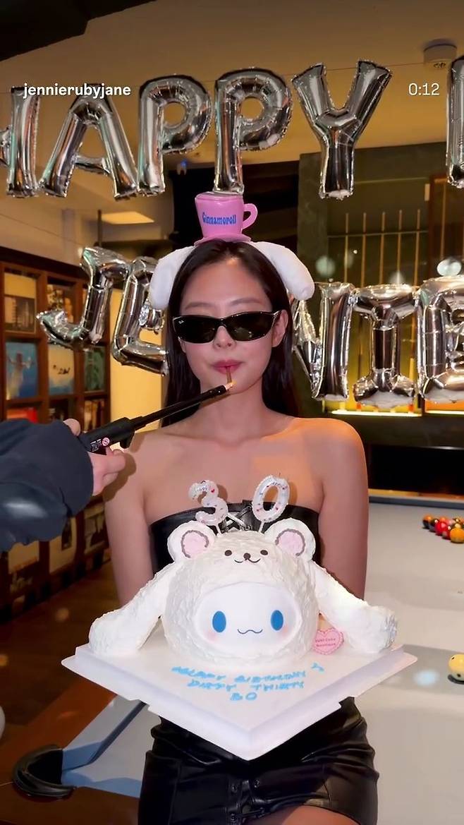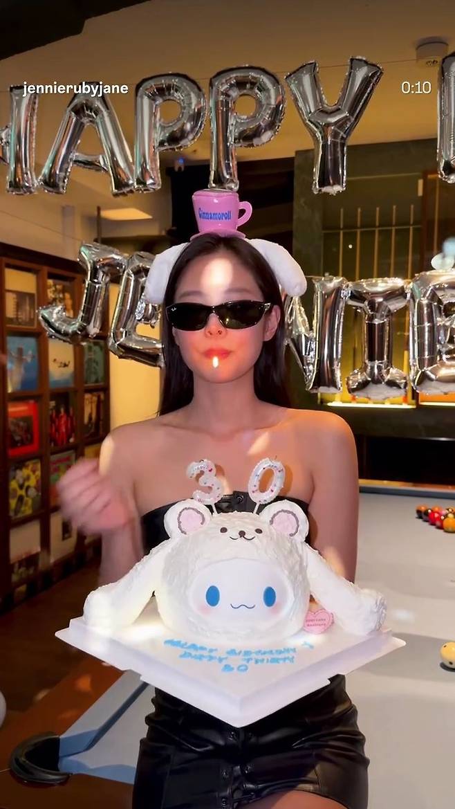 제니는 16일 자신의 SNS 계정에 서른 번째 생일을 축하하는 짧은 영상을 게재했다. 영상 속 제니는 케이크를 들고 있다가 지인들이 씌워주는 선글라스와 캐릭터 머리띠를 착용한 뒤 입에 긴 생일초를 물고 토치를 이용해 불을 붙였다. 이어 초를 케이크에 꽂은 제니는 입으로 바람을 불어 불을 끄고 연기는 카메라를 향해 날아들었다. 제니는 곧 선글라스를 벗고 기쁨을 만끽한 듯 카메라를 향해 환하게 웃었다.