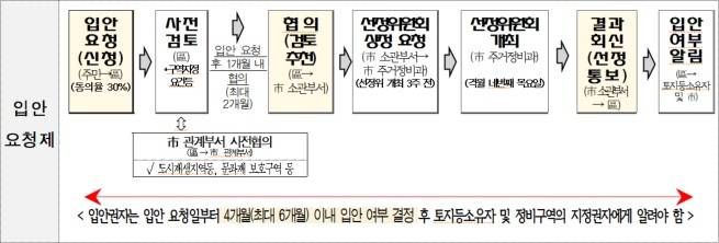 | ▲ 서울시가 배포한 신속통합기획 주택재개발사업 입안요청을 위한 후보지모집 안내문 중 후보지 선정 과정을 보여주는 부분 |