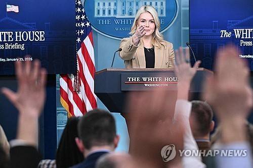 [브리핑 진행하는 레빗 백악관 대변인 (AFP=연합뉴스 자료사진)]