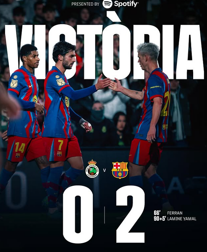 바르셀로나, 라싱 데 산탄데르 원정서 코파 델 레이 8강 순항…야말 쐐기골