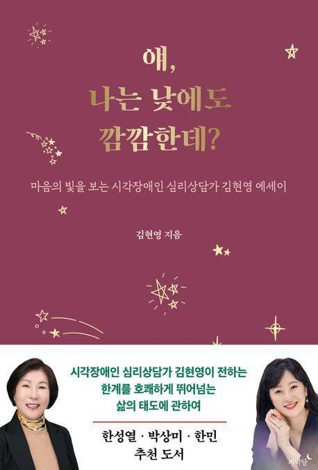 시각장애인 심리상담가 김현영이 시력을 잃은 이후의 삶을 담담하고 솔직하게 풀어낸 에세이다. 발레 전공자에서 망막색소변성증으로 실명한 뒤 절망을 겪었지만, 그는 공무원 시험·선수·상담가·교수·라디오 진행자에 이르기까지 끊임없이 새로운 길을 만들어왔다. 장애라는 현실을 부정하지 않으면서도 더 깊이 듣고 공감하며 앞으로 나아가는 태도를 전하는 이 책은, 어둠 속에서도 방향을 잃지 않는 삶의 용기를 유쾌하게 건넨다. (김현영 지음 | 저녁달)
