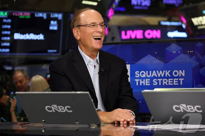 (뉴욕 로이터=뉴스1) 강민경 기자 = 래리 핑크 블랙록 최고경영자(CEO)가 15일 CNBC방송 스쿼크 박스에 출연해 환하게 웃고 있다. 블랙록은 지난해 운용자산이 처음으로 14조 달러를 넘어섰다고 발표했다. 2026.1.15
